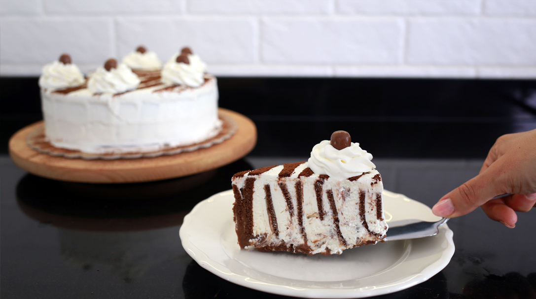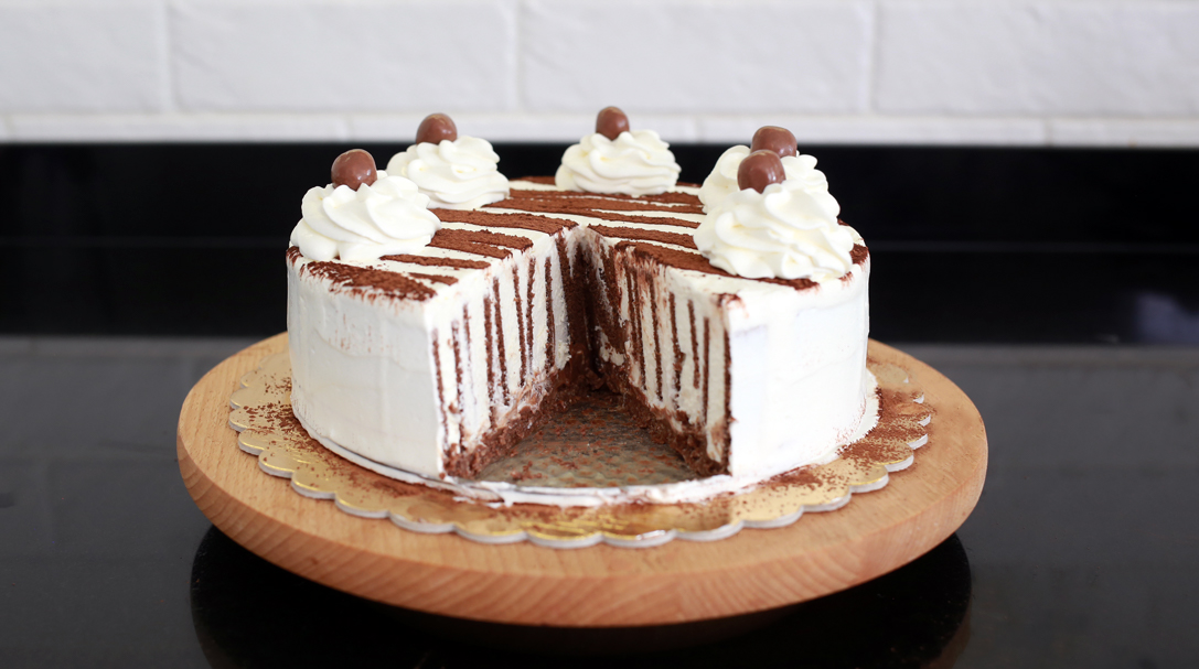 Torcik zebra z mleczną kanapką to przepis dla wielbicieli mlecznej kanapki. Ciasto jest lekkie i kremowe. Dosyć słodkie, ale równoważy je nieco bita śmietana, którą przekładamy warstwy, oraz gorzkie kakao na wierzchu.