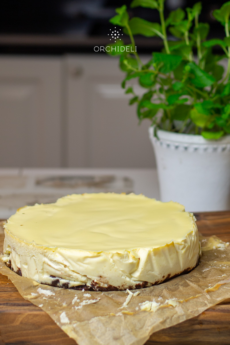 Przepyszny, wilgotny sernik. Z delikatnie pomarańczową nutą. Niezbyt słodki. Nie musi być przechowywany w lodówce.