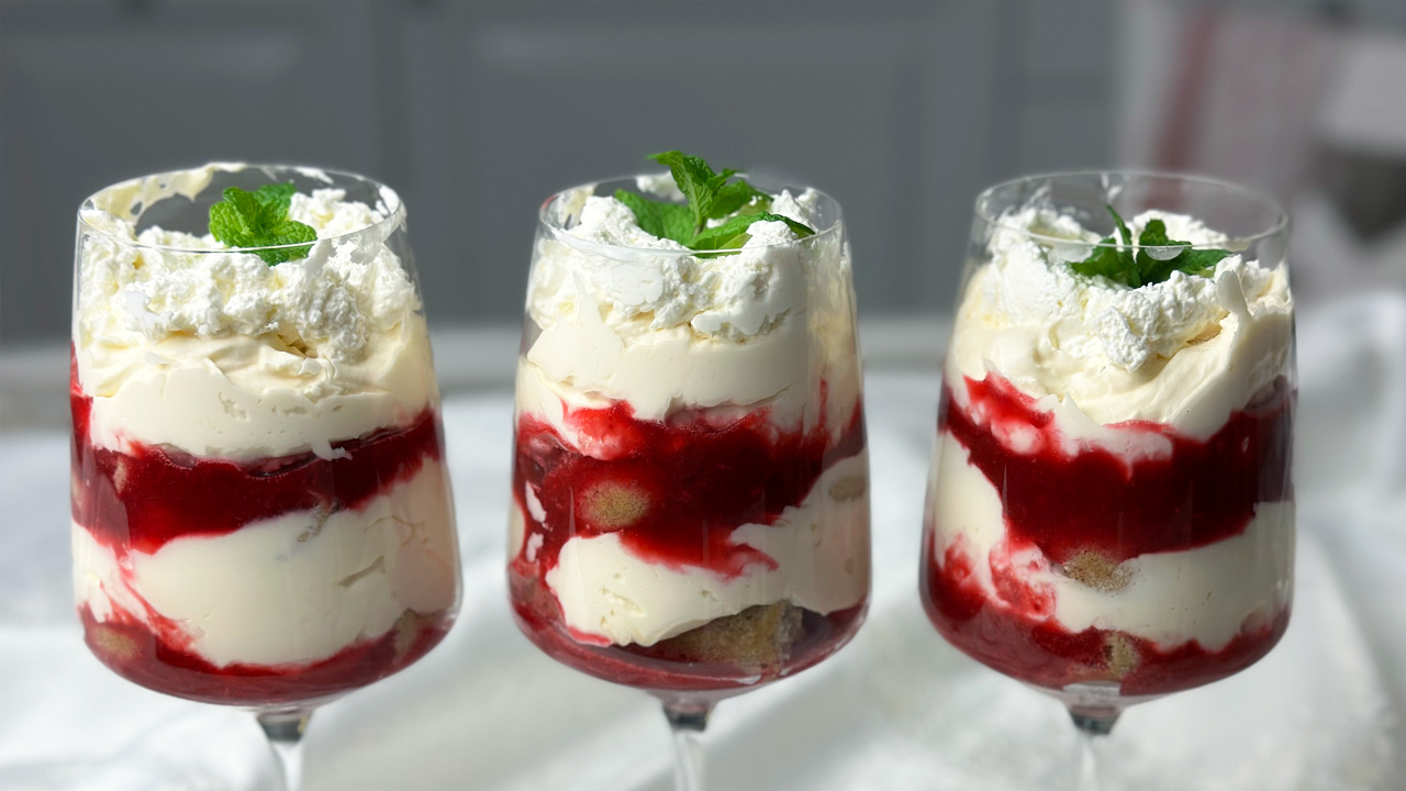 Delikatne tiramisu z malinami Na #walentynki i nie tylko ✅ Przepis na tiramisu z malinami na 5-6 kieliszków ok. 300 ml pojemności ✅ Mus malinowy Składniki ▫️500 g malin (mogą być mrożone) ▫️4 łyżki cukru (60 g) 1. Maliny zagotuj z cukrem. 2. Następnie przetrzyj przez sitko, aby pozbyć się pestek i wystudź. ✅ Krem do tiramisu Składniki ▫️500 ml śmietanki 36% ▫️1 łyżka ekstraktu waniliowego ▫️5 żółtek ▫️4 pełne łyżki cukru pudru (70 g) ▫️250 g serka mascarpone Sposób przygotowania: 1. Aby wysterylizować jajka, włóż je na kilkanaście sekund do wody o temp. 65℃. Zanim zaczniesz odliczanie, upewnij się, że woda po włożeniu jajek, osiągnęła ponownie temperaturę 65℃. 2. Schłodzoną śmietankę ubij na sztywno z łyżeczką ekstraktu waniliowego. Gdy będzie ubita odstaw ją na chwilę na bok. 3. Następnie żółtka z wyparzonych jajek ubij z cukrem pudrem przez 5 minut, dodaj mascarpone, zmiksuj krótko. 4. W kolejnym kroku dodaj 2/3 bitej śmietany i wymieszaj, już bez miksera. Dodatkowo ▫️1 szklanka mocnej kawy lub espresso (można dodać alkoholu) ▫️biszkopty typu ladyfingers 1. Biszkopty namocz w kawie i ułóż na dnie kieliszka. Następnie wylej 3-4 łyżki musu malinowego. 2. Na wierzchu ułóż ostrożnie 1-2 łyżki kremu, lekko wyrównując. 3. Następnie na kremie ułóż namoczone w kawie biszkopty. Zlej je 3-4 łyżkami musu malinowego. 4. Mus przykryj 2 łyżkami kremu. Na wierzchu ułóż 2 łyżki bitej śmietany i listek mięty. 5. Całość wstaw do lodówki na 2-3 godziny lub na całą noc. Powodzenia! #o#orchidelit#tiramisud#deser