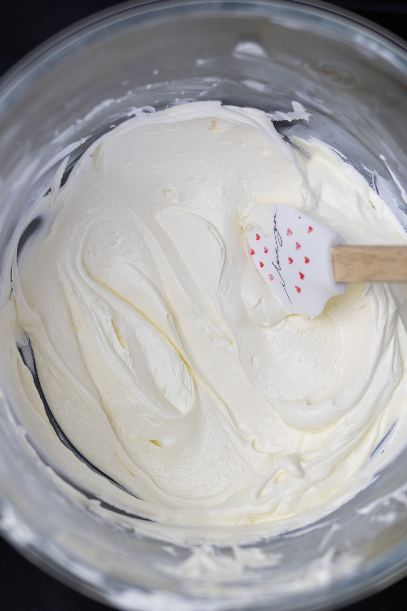 - Gotowy krem możesz zabarwić na dowolny kolor. Jeśli ma być idealnie gładki, warto go również odpowietrzyć, aby pozbyć się bąbelków powietrza, które zgromadziły się w maśle w trakcie ubijania.